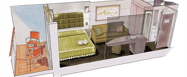 Схема каюты, площадь, количество спальных мест, меблировка и дизайн интерьеров, конструктивные особенности могут отличаться от представленных на фотографии (даже среди кают одной категории).
